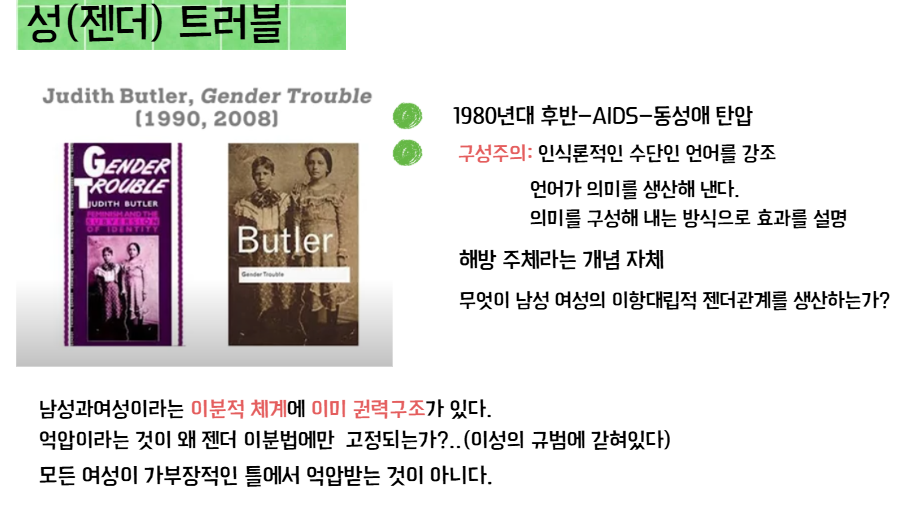 3물결 1990년대 이후 교차성,여성 내부의 차이 인정 주디스 버틀러의 수행성 이론,
