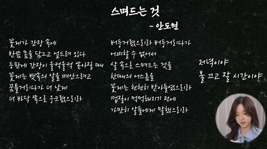 그럼 '간장게장'을 먹기 전까지의 '스며드는 시간'(인간의입장)을 이야기 하는 거구나