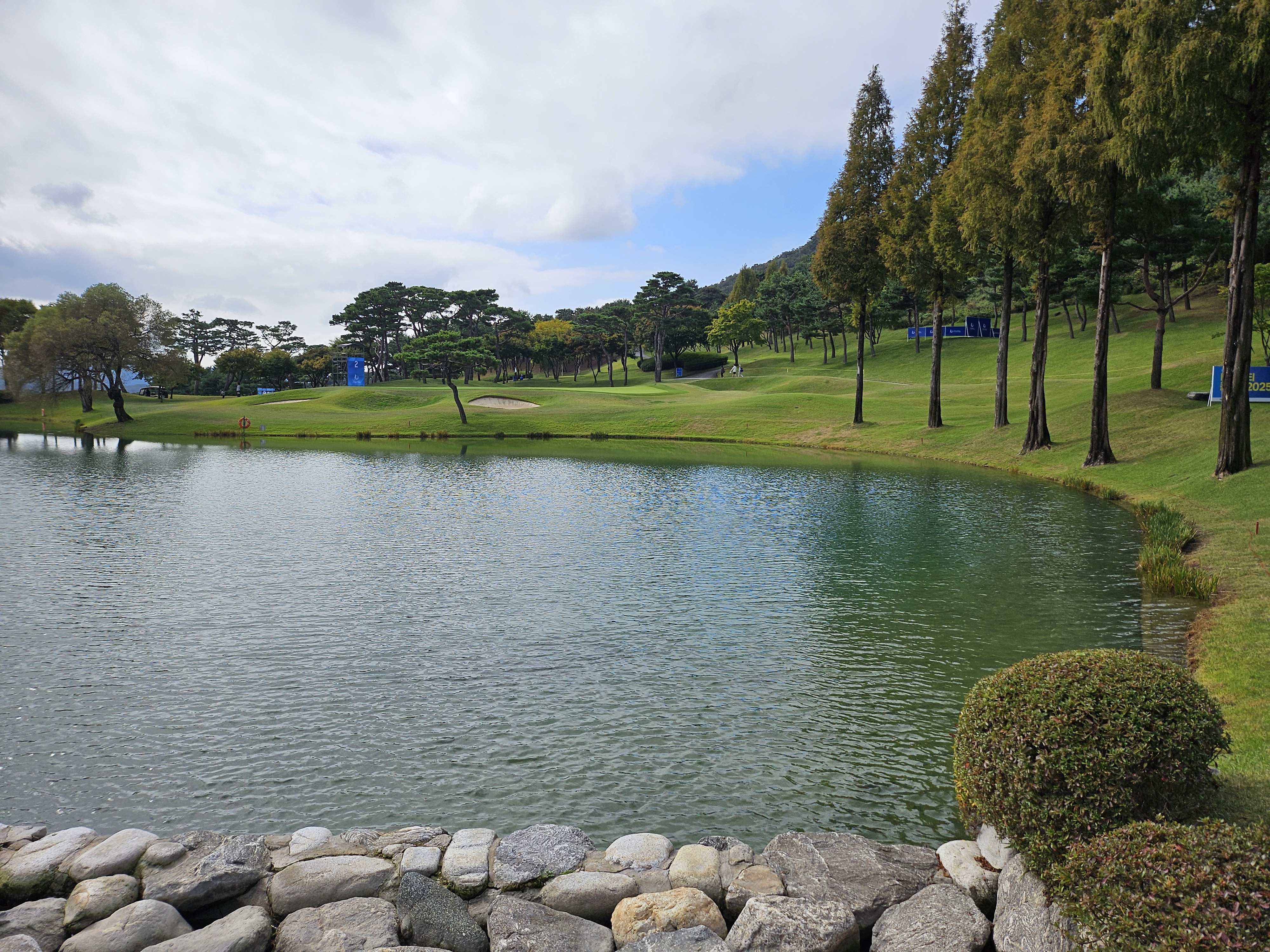 이번 대회는 파주 서원밸리 컨트리클럽에서 열렸는데, 이곳의 해저드(연못)가 정말 인상적이었습니다.